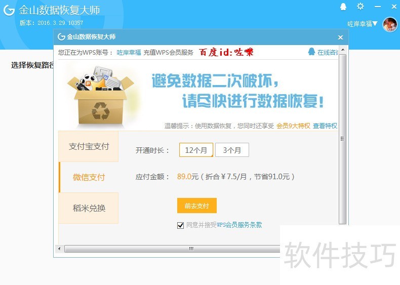 8、 会员要求对于某些数据,或者需要恢复的文件比较大的需要购买金山会员才行