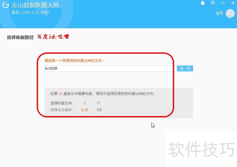 7、 恢复路径然后找到需要恢复的数据目标路径,注意一下不能和原分区一样