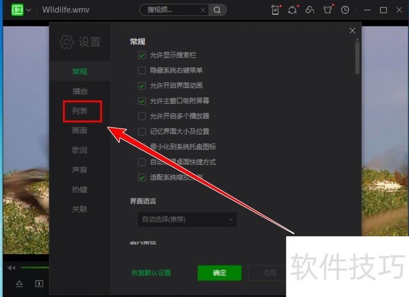 4、 在“列表位置”下方,勾选“播放器左侧”。