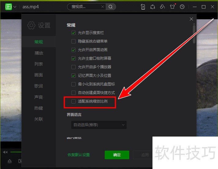 4、 在常规页面中,勾选“适配系统缩放比例”。