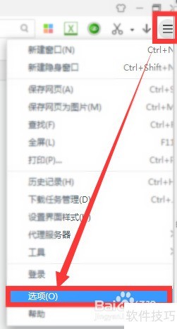 4、 四、点击“选项”命令选项后,这个时候会弹出浏览器“选项”对话框。如图所示;