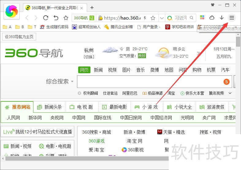 1、 打开360极速浏览器