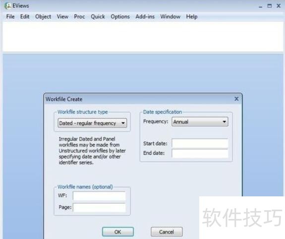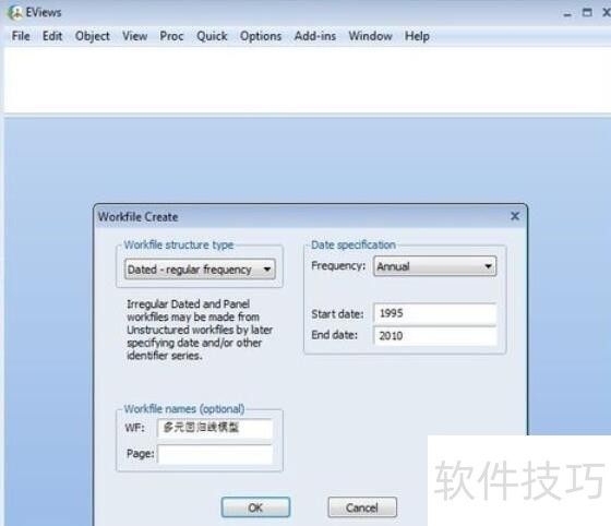 2、 ? 填写相关起始日期和命名。点击“OK”,workfile建立。
