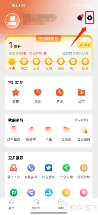 2、 进入我的,点击【设置图标】。