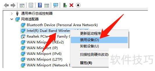 4、 右键单击Intel(R)Dual Band Wireless- * C 3165],单击[禁用设备(D)