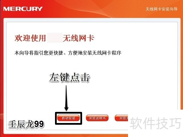2、 在打开的无线网卡安装向导窗口,我们点击:自动安装;