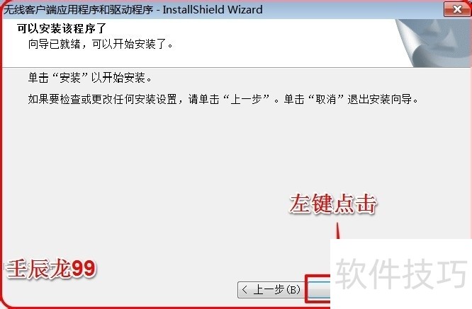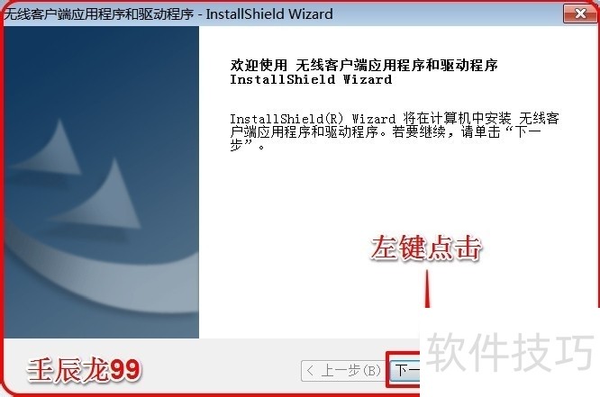 3、 在无线客户端应用程序和驱动程序窗口,我们点击:下一步;