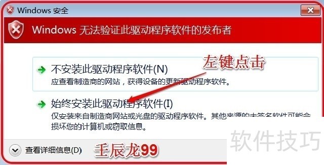 8、 在Windows安全窗口,我们左键点击:始终安装此驱动程序软件(I);
