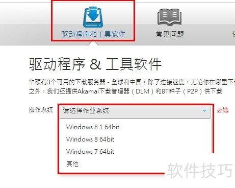 5、 在“驱动程序和工具软件”---“选择操作系统”