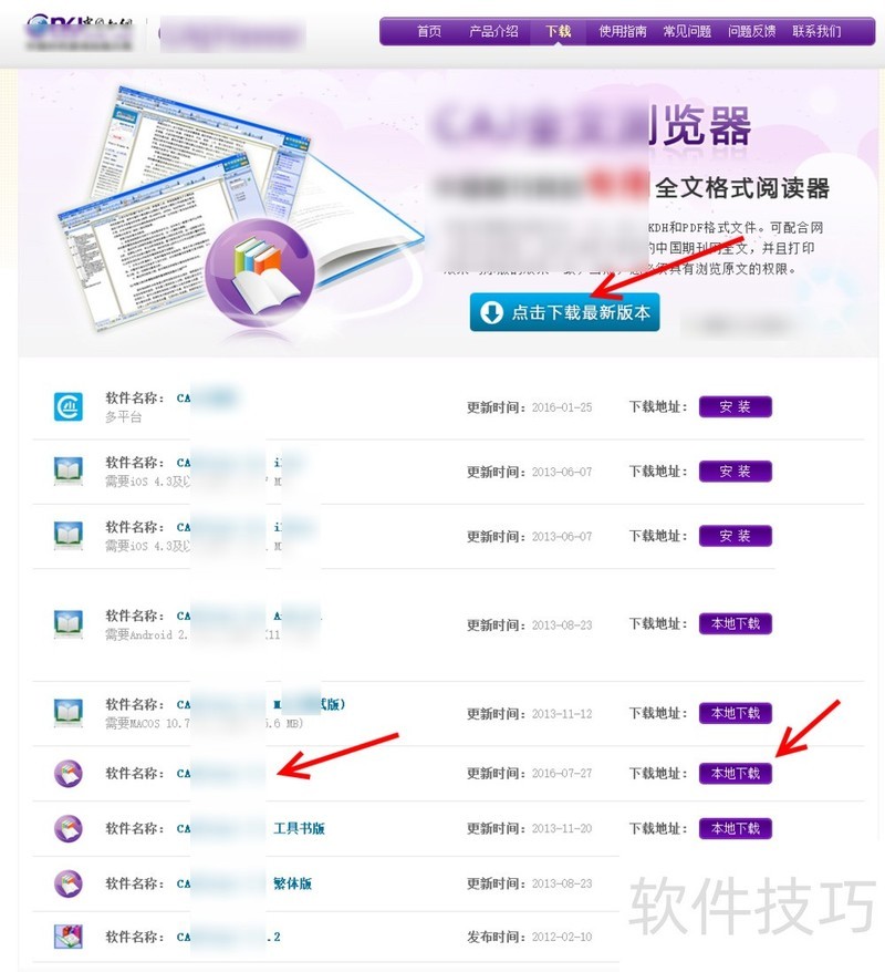 2、 在下载列表中,可以直接点击大图中的那个“点击下载最新版”按钮,就会自动弹出下载框,下载windows操作系统下使用的caj阅读软件。也可以直接点击下方的“点击下载”按钮,完成下载。3如果是其它操作系统下使用的caj阅读软件,还需要进入到下载列表中,选择对应的操作系统的caj阅读软件来下载。