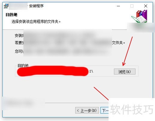 4、 点击“浏览”按钮,选择软件的安装目录,再点击“ 下一步”按钮,以继续安装步骤。