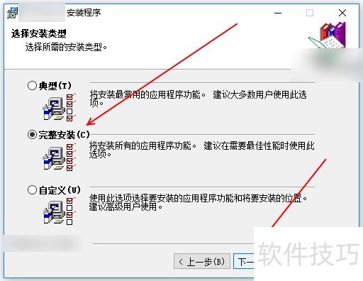 5、 在“选择安装类型”页面,选择“完全安装”,再继续安装步骤。