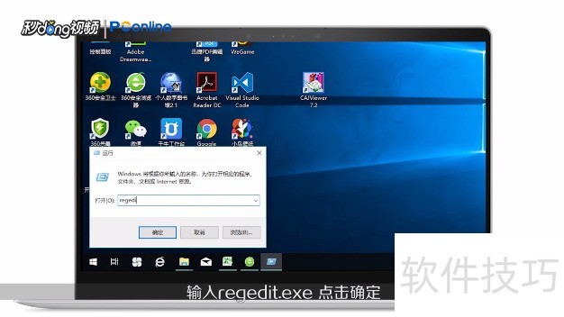 1、 右膨狠键开始图标,打开运行,输入销没酱regedit.exe,点击确定。