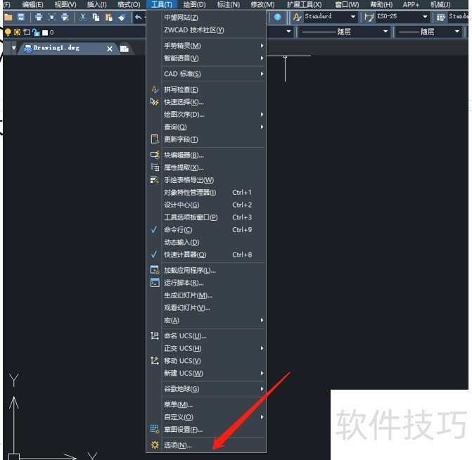 2、 选择顶部菜单栏的工具按钮,如图弹出下拉菜单