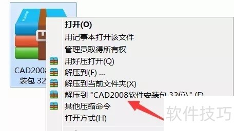 1、 首先要拥有AutoCAD的安装包,可以网上找资源或者提问小编哦。2右击软件压缩包,选择解压到CAD2008软件安装包。【电脑里要有解压软件哦】