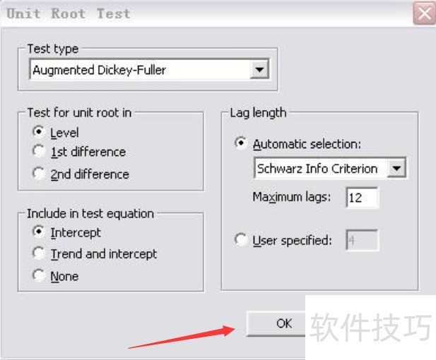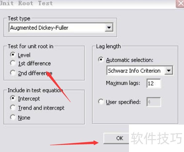 5、 第五步,打开“test type”,点击“test”、“intercept”,设置参数,点击“OK”。