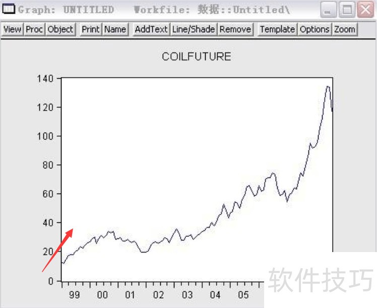 4、 第四步,打开菜单,点击“graph”,在对话框中输入序列名称“coilfuture”。得到分析图。