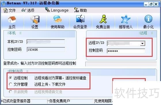 2、 在被控目标PC上安装软件被控端,在控制PC上安装控制端,两端登录同一ID。如下图。3同时运行被控端与主控端,在ID框中输入同一ID、控制密码。选择连接模式后点击连接即可进行远程控制。如下图。