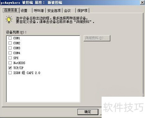 2、 双击“添加被控端”,在PcAnywhere新的被控端属性中,把TCP/IP选上