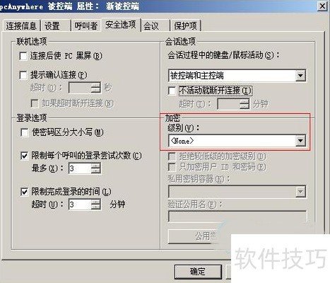 4、 “呼叫者”选项卡只有重启计算机才可以使用,在稍后设置。?在“安全选项”选项中,要特别注意“加密”选项,远程控制可能会随时泄露个人信息,所以要多加注意安全问题,PcAnywhere的加密级数越高,速度会变慢