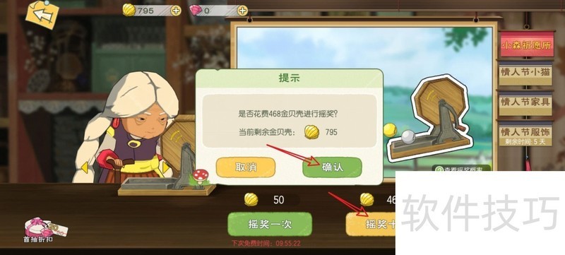 4、 花468个金贝壳可以抽奖10次,点击【确认】。