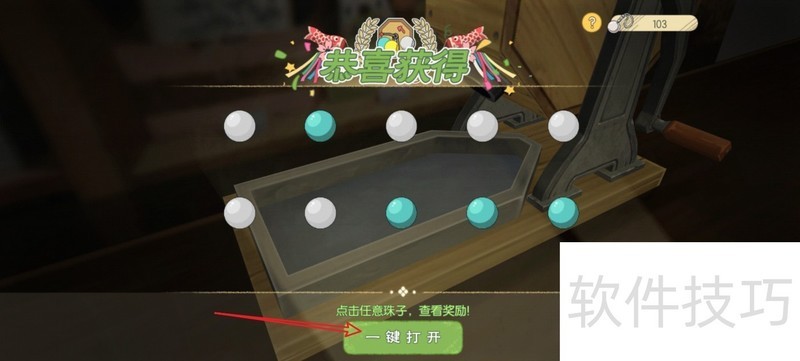 5、 获得10个珠子和10个银水琴铃,点击【一键打开】所有珠子。