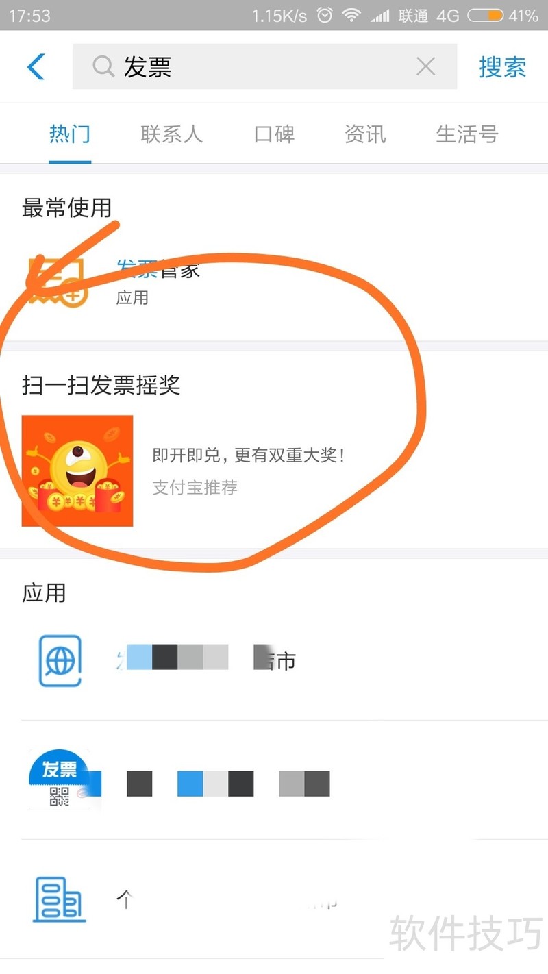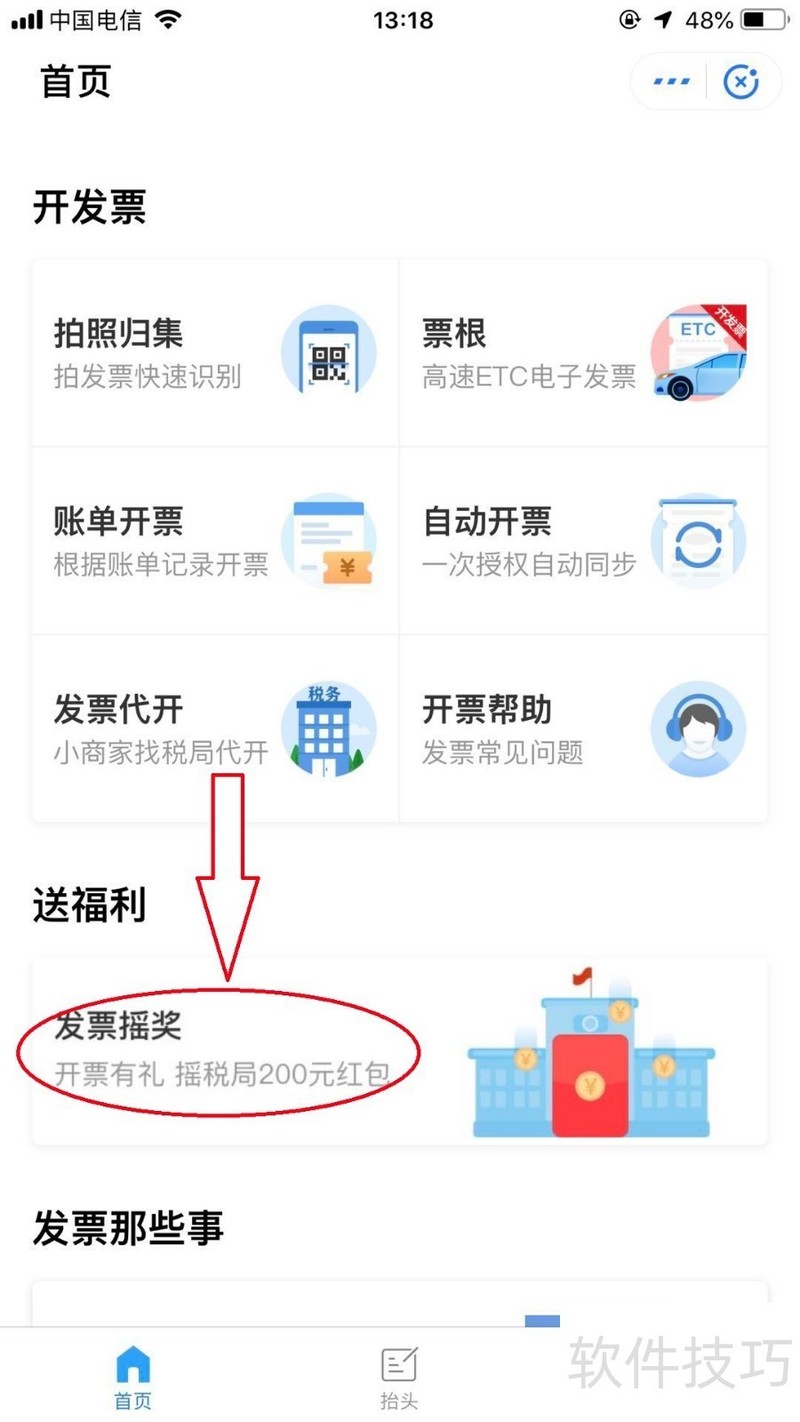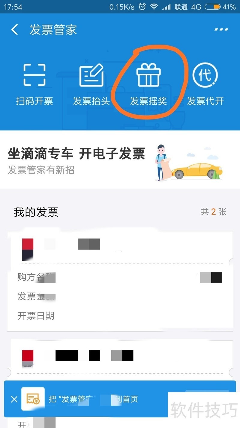 4、 点击【发票摇奖】。