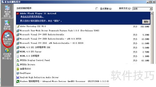 1、 将Window XP安装光盘放入光驱,点击“开始”,“设置”,“控制面板”,选择“添加/删除程序”,如图