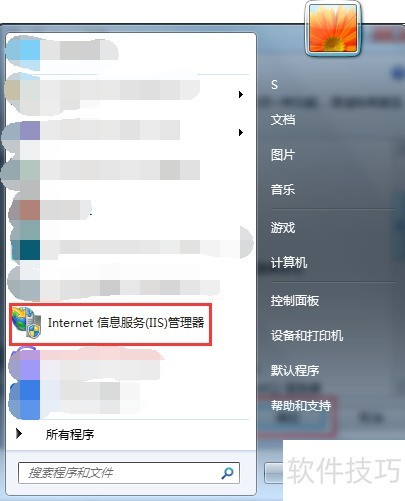 9、 返回电脑桌面,在<开始>程序选择列表中出现“Internet信息服务(IIS)管理器”,则表示IIS管理器开启成功,可以进行下一步的设置工作。