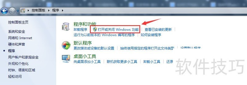 4、 在程序管理页面中,找到并点击<打开或关闭windows功能>,进入“打开或关闭Windows功能”对话框;