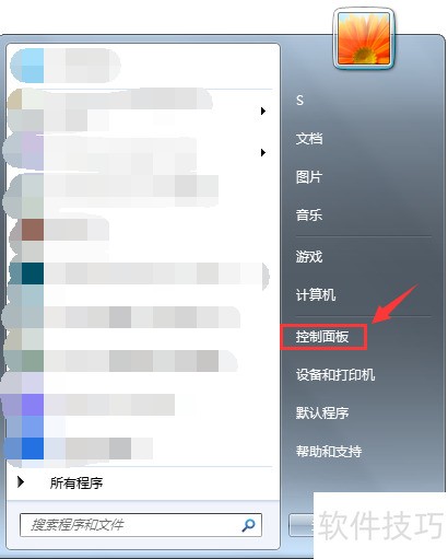 2、 程序列表中,找到<控制面板>选项,点击进入"控制面板"主页;