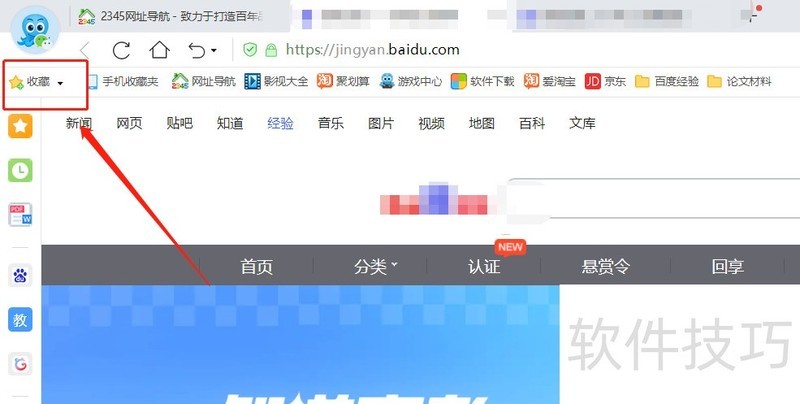 2、 新页面里,进入网页,点击左上角【收藏】选项。