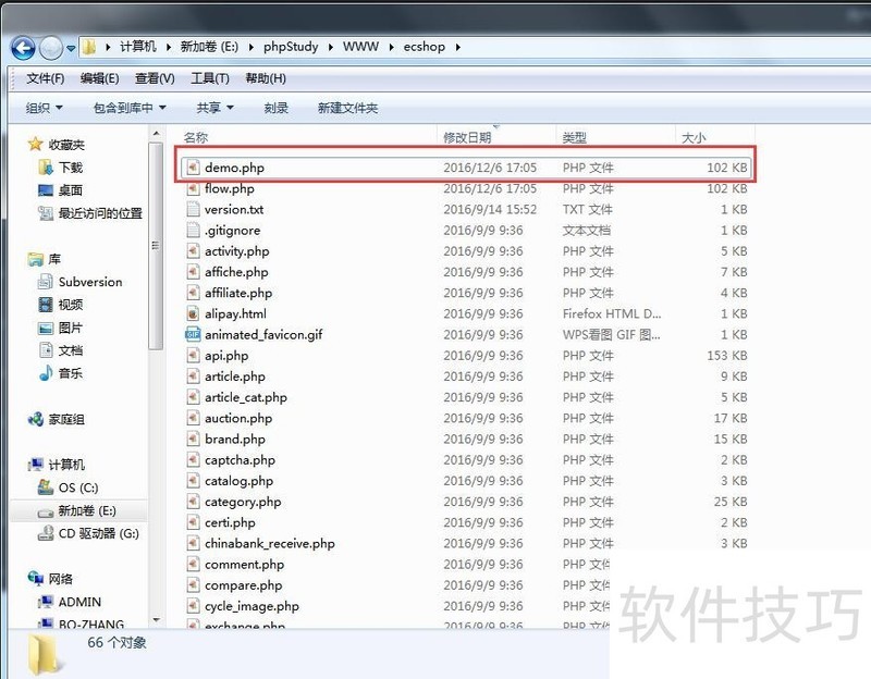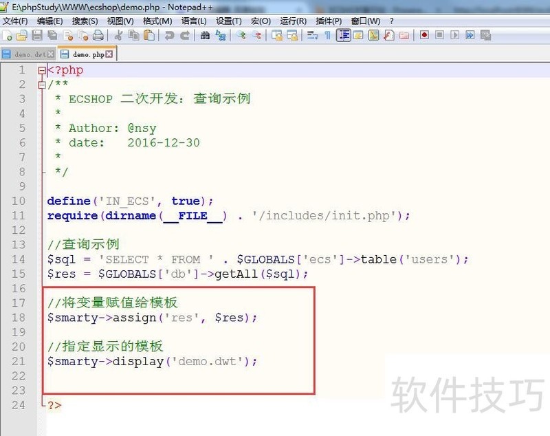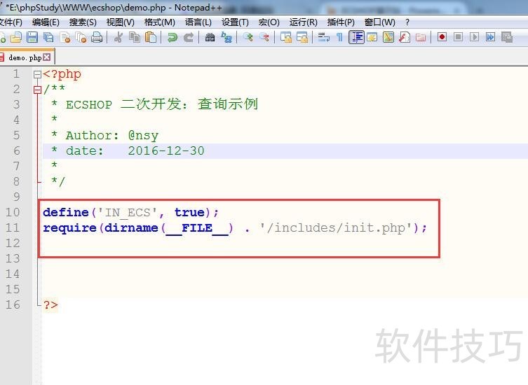 1、 在ecshop根目录下新建demo.php文件;