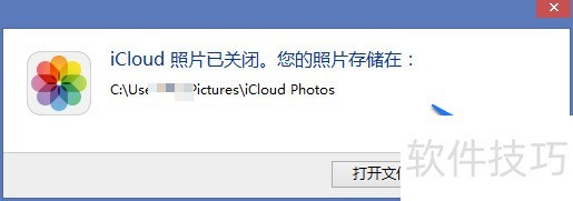 5、 接下来会弹出 iCloud 照片流在电脑上的储存位置,点击“打开文件夹”可以打开该文件夹查看照片。点击“确定”继续,如图所示