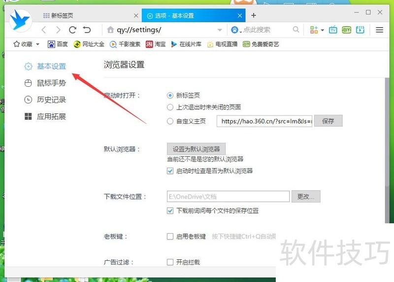 5、 ⒃凇把∠?设置”对话框中、选择左侧窗格的“基本设置”选项卡。如图所示;