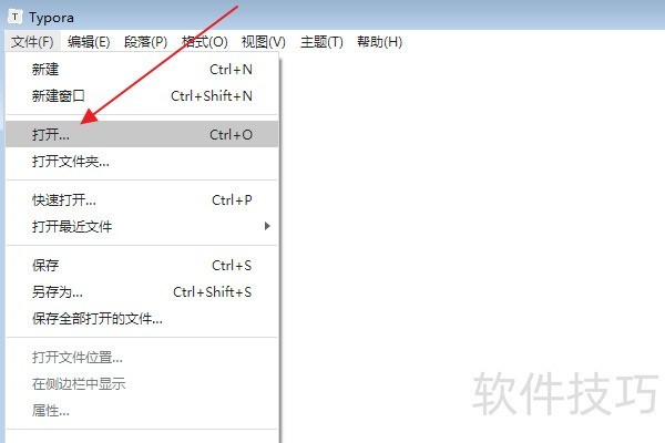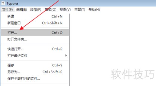 3、 在下拉菜单中,选择并单击“打开...”选项。