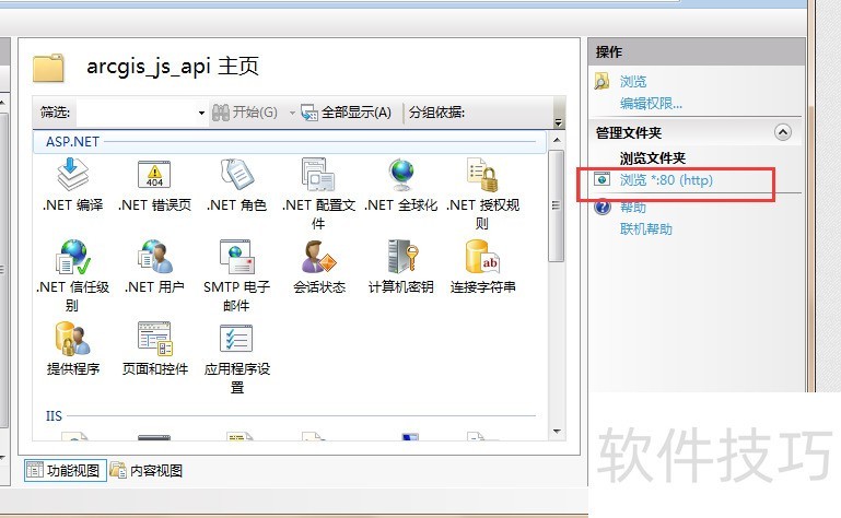 4、 单击添加的文件夹,在右侧主页中找到目录浏览,点击打开功能,启动目录浏览功能5点击浏览功能打开文件夹即可通过地址访问文件夹目录