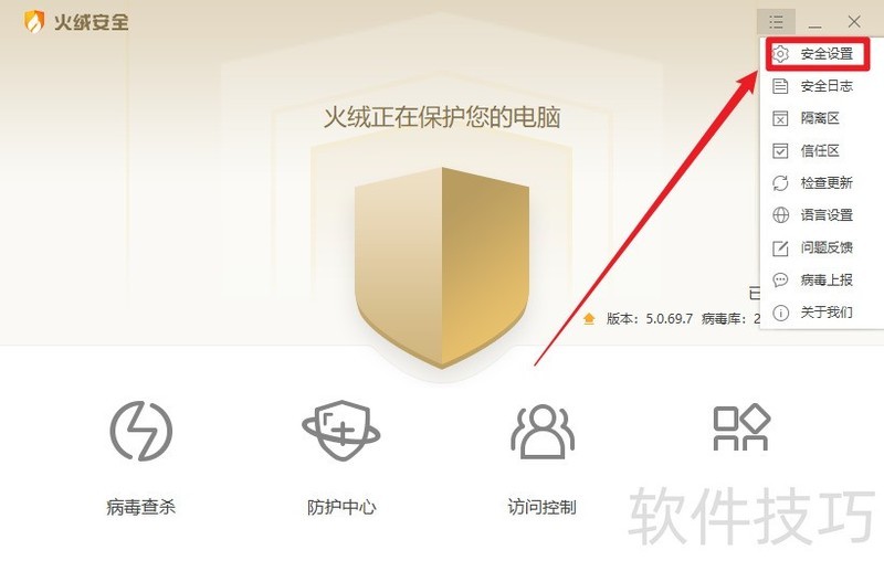 1、 电脑打开火绒安全软件
