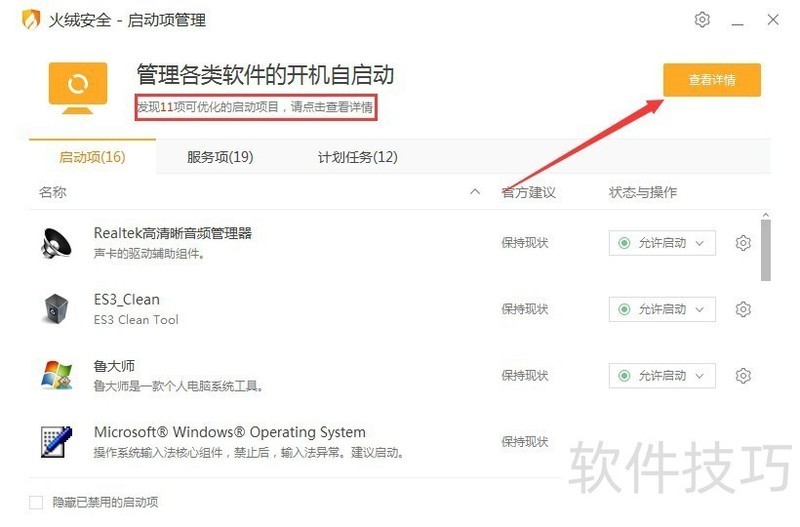 3、 待软件检查启动项后,点击“查看详情”;