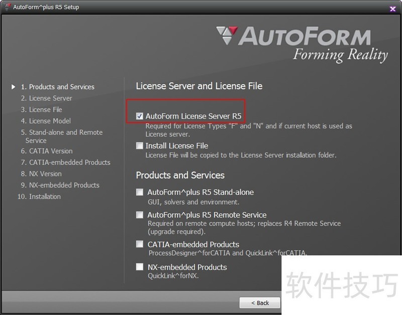 2、 点击“Next”下一步,在“I have?read? and agree to the terms”前打钩,再点击下一步。3在“Autoform Licen se server R5 ”前打钩,点击下一步安装Autoform Licen se server R5