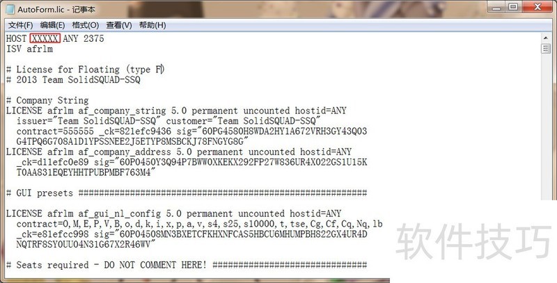 6、 用记事本打开“AutoForm.lic”将XXXXX替换为计算机全名“”(win7:计算机右键-属性-更改设置—更改-计算机名复制即可)