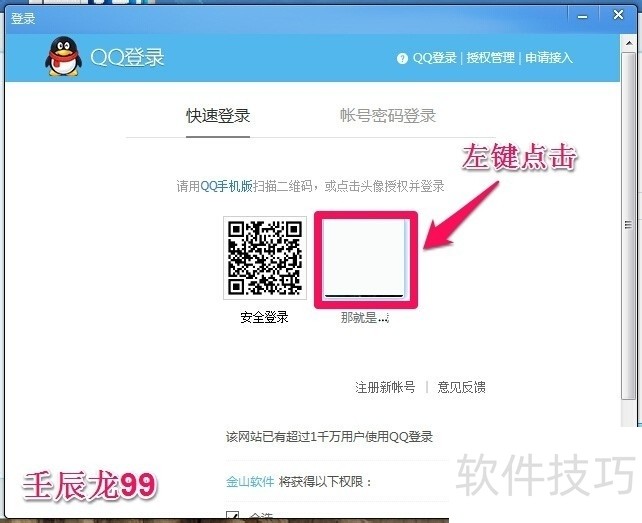 10、 如果我们QQ已经登录,就会弹出一个QQ登录的窗口,我们左键点击已经登录的QQ头像,如图示的:那就是...;