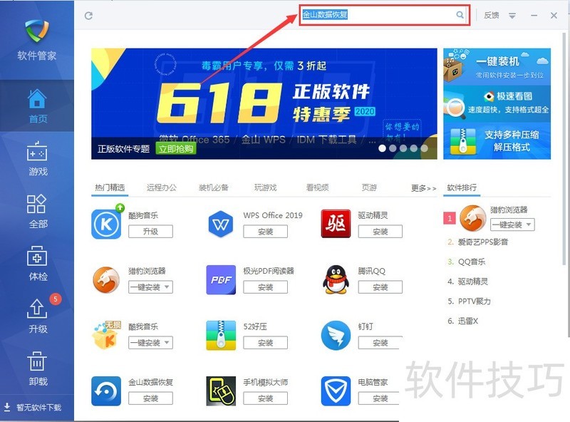 如何在金山毒霸软件里安装金山数据恢复
