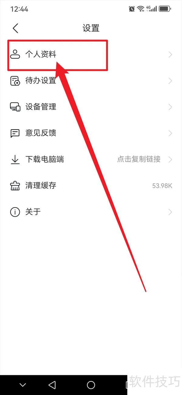 2、 第二步:进入设置界面,点击【个人资料】。