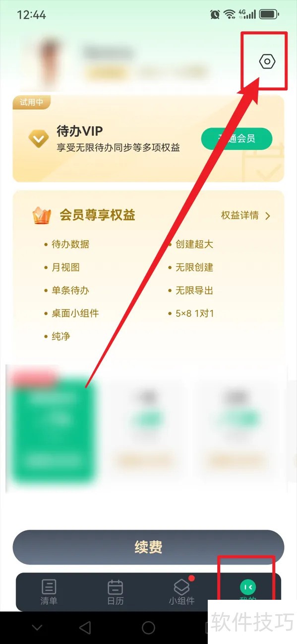 1、 第一步:打开小智桌面日历,选择进入【我的】界面,点击【设置】图标。