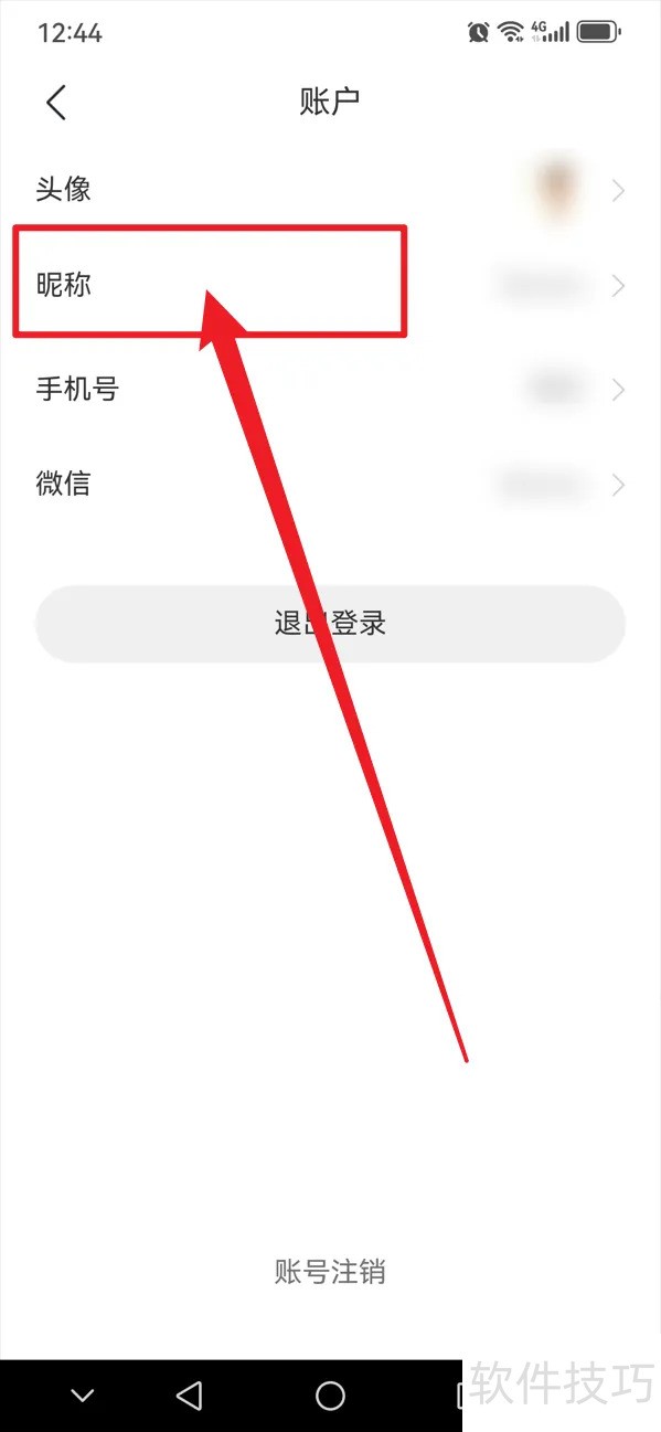 3、 第三步:在账户界面,点击【昵称】。