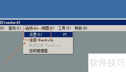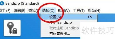 1、 第一步:打开Bandizip,找到【选项】下的【设置】。