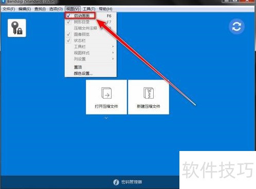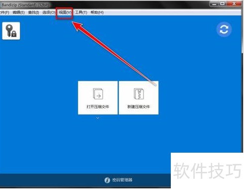 1、 第一步:在Bandizip窗口中,点击菜单栏上的“视图”。