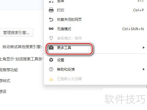 2、 弹出菜单后,我们将鼠标移动到更多工具