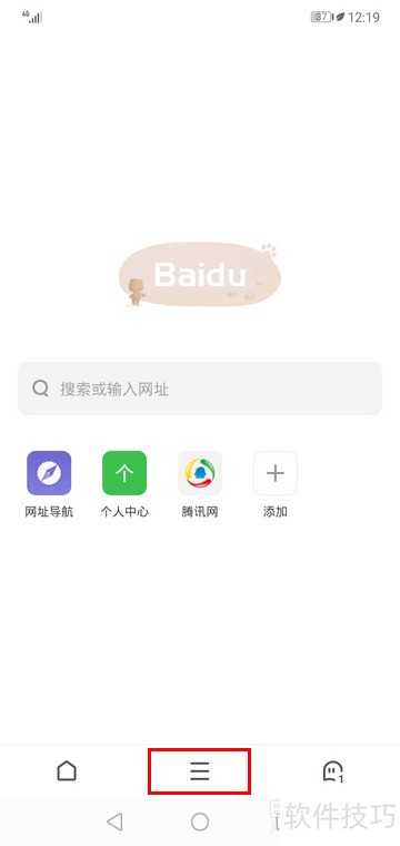 2、 打开极速浏览器的主界面以后,点击下方的三条横线。